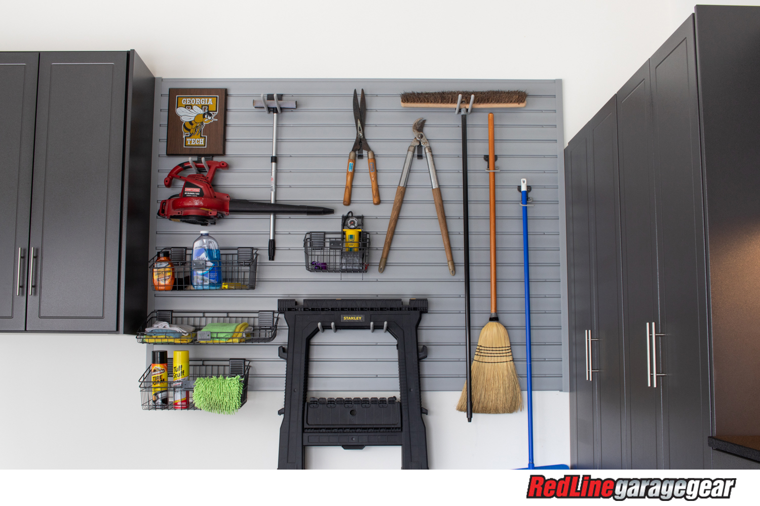 You may not have thought about it but you can use your garage walls as storage. You can install slat wall panels to your garage wall so you can hang just about anything. Hanging your things on your wall is a great way to keep them off your garage floor.