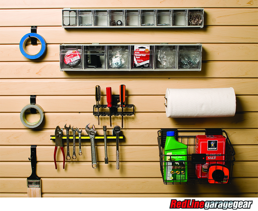 Now that you know there are slat wall accessories, I bet you’re anxious to know what you can store on these, huh? Well, here are a few ideas.