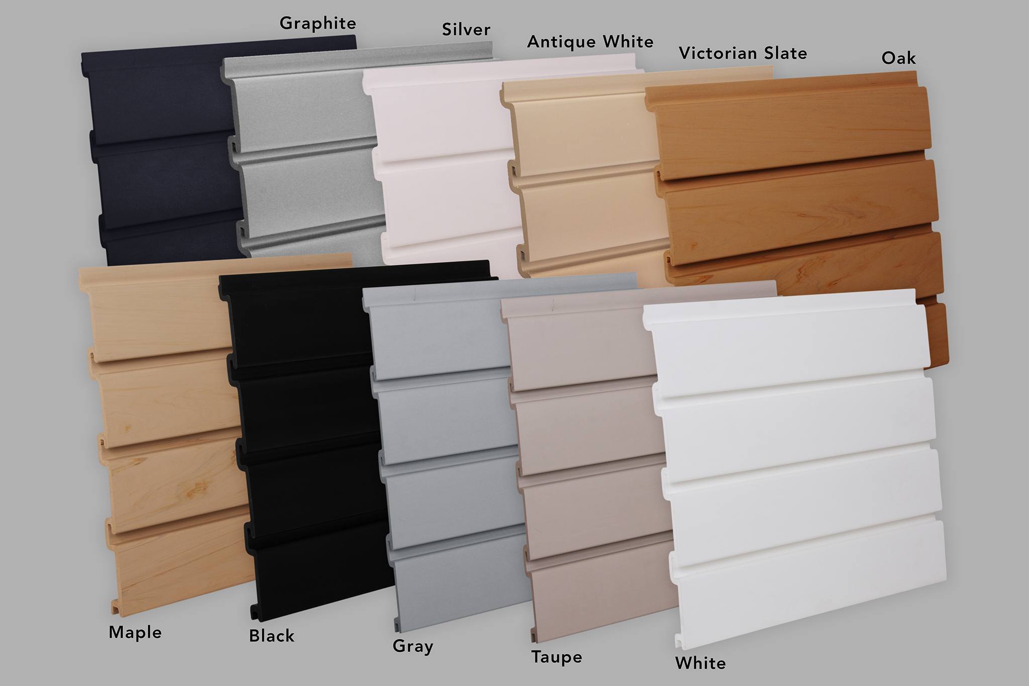 The slat wall is available in 10 different colors. All slat wall comes with color matching screws and trim as well.